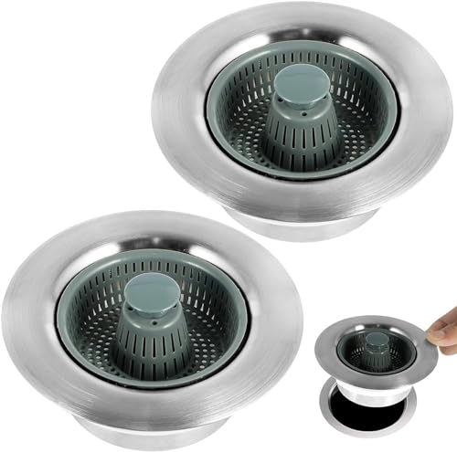 1/2 Pcs Bonde Lavabo Universel, Filtre de Vidange évier à Rebond Bouchon d'évier en Acier Inoxydable Crépine Vidange avec Panier Filtrant Amovible pour évier de Cuisine de Vanité de Salle Bain