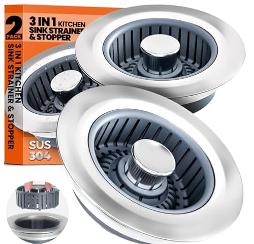 Lot de 2 bondes de vidange 3 en 1 pour évier de Cuisine et Bouchon d'évier, en Acier Inoxydable amélioré avec Panier Anti-Obstruction, Couvercle de vidange Pop-up pour pièces Standard de 8,9 cm