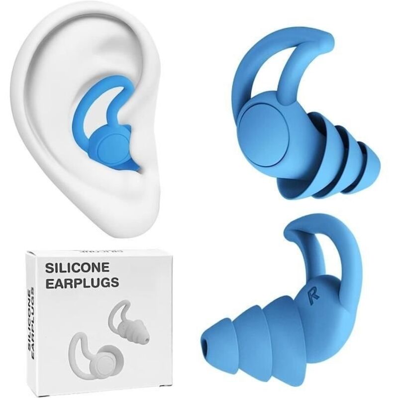Bouchon D'oreille pour Dormir, Protection Auditive, Réduction de Bruit, Silicone Réutilisables Bouchon Oreille, pour les Concerts, Festivals, Dormir, Voyages, Concentration, Bleu