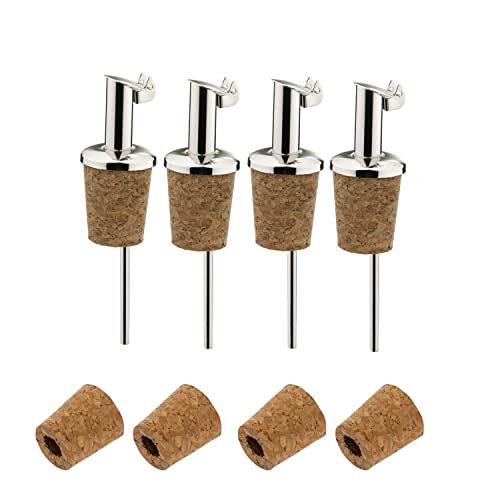 Westmark 4 Becs Verseurs pour Spiritueux/Huile + 4 Bouchons de Rechange, avec Clapet, avec Tube d'air, court, Métal/Inox, Bouchon en liège, Inox Gastro, Argenté, 457022E3