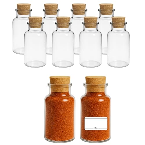 Viva Haushaltswaren Tulipano Lot de 10 Bouteilles en Verre avec Bouchon en liège 100 ML Entonnoir Ø 5 cm Inclus