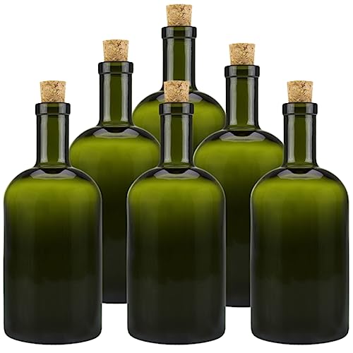 mikken Lot de 6 bouteilles en verre vert et marron de 500 ml avec bouchon en liège.
