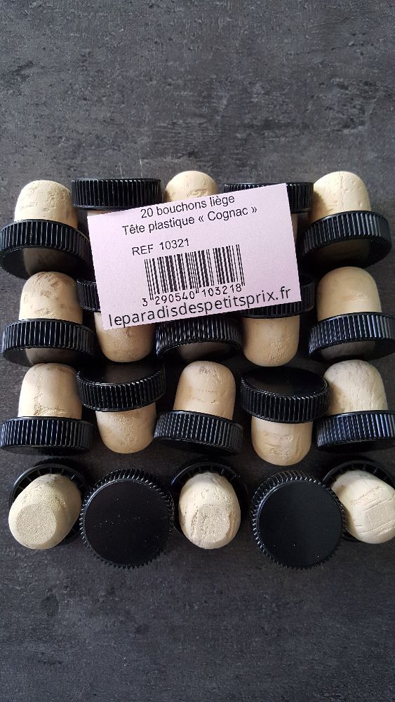 Bouchon en liège pour bouteille ,tête plastique x 20, Tous types bouteilles