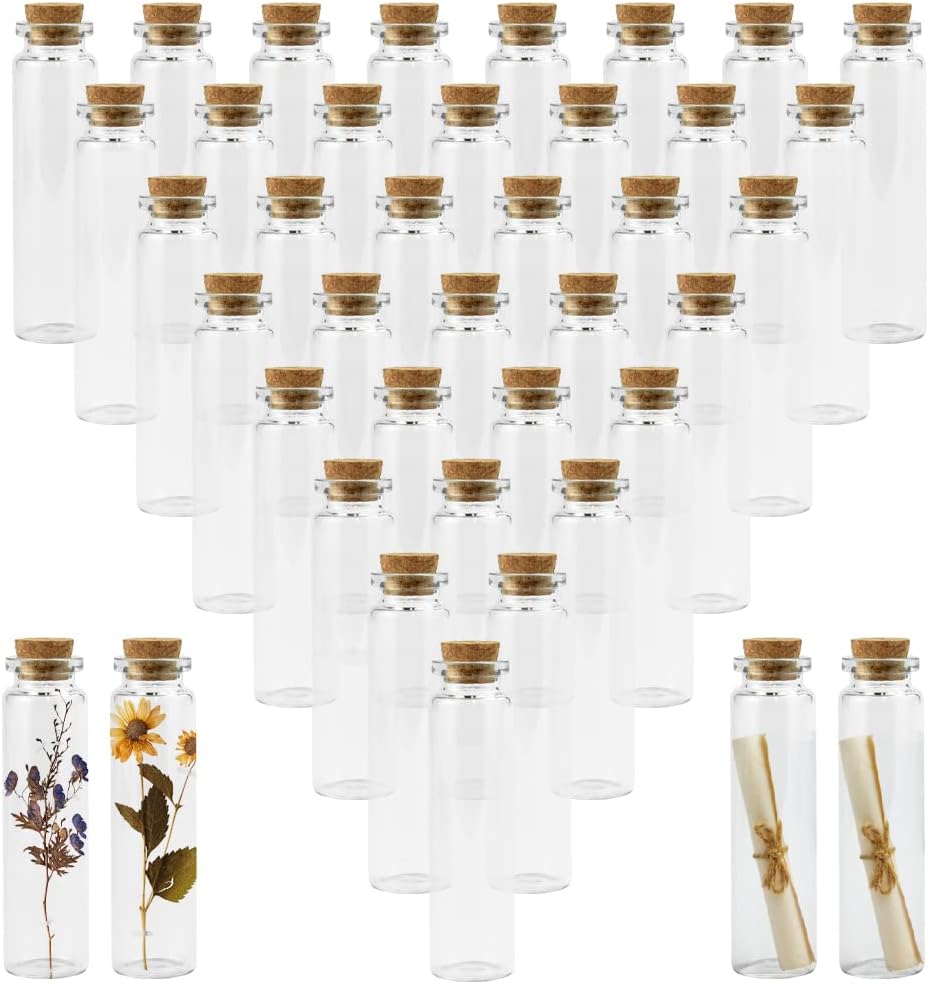 JEXNOVASHOP-40 PCS Mini Bouteilles en Verre 20ml Petites Bouteilles Transparent Bocaux en Verre avec Bouchon en Liege Decorative pour Épices Parfums Notes