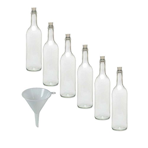 Viva-haushaltswaren lot de 6 bouteilles en verre vides avec bouchon en liège 500 ml entonnoir blanc ø 9 cm
