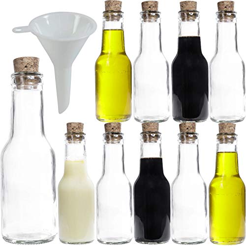 Viva Haushaltswaren Lot de 10 Petites Bouteilles en Verre vides avec Bouchon en liège 150 ML + Entonnoir Ø 7 cm