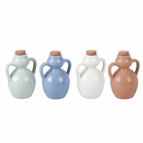 Villa d'Este Home Tivoli Lot de 4 Mini huilier 107 ML en céramique, Bouchon en liège, 4 Tons