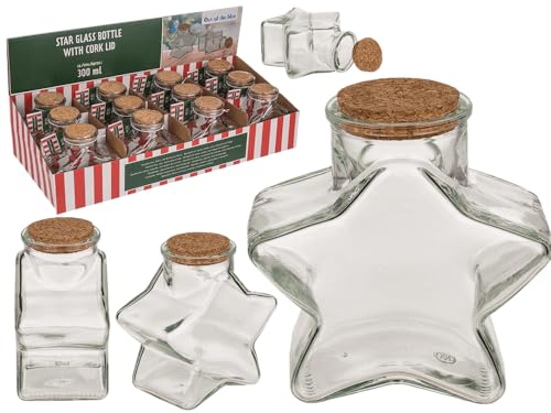 Out of the blue Lot de 12 bouteilles en verre en forme d'étoile avec bouchon en liège, environ 11 x 7,5 x 12 cm, 300 ml