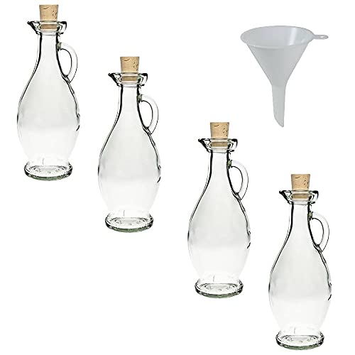 Viva Haushaltswaren Lot de 4 jolies carafes en verre vides avec bouchon en liège 250 ml + Entonnoir Ø 7 cm