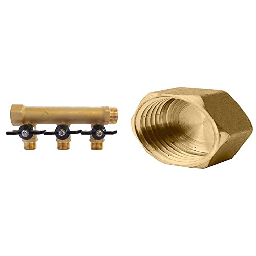 Somatherm For You 3540730010391 Collecteur Laiton avec Mini-vannes intégrées-3 départs 15/21-Entrée Femelle 20/27-Sortie Mâle 20/27, Aucun & Bouchon laiton femelle 20/27
