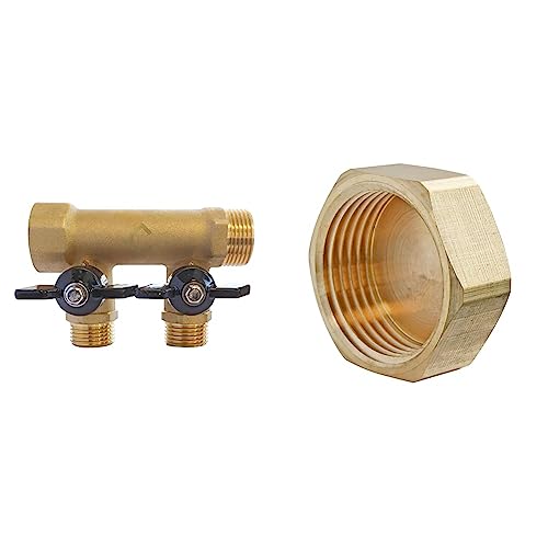 Somatherm For You 3540730010391 Collecteur Laiton avec Mini-vannes intégrées-3 départs 15/21-Entrée Femelle 20/27-Sortie Mâle 20/27, Aucun & Bouchon laiton femelle 15/21