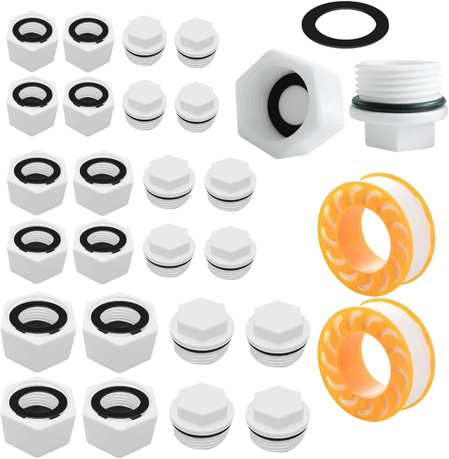 48PCS Bouchon Tuyau en Plastique TREABEAR, Bouchon 15/21 20/27 26/34 Male et Femelle Avec Anneau en Caoutchouc et Arrêt d'Eau,Capuchons Filetés Hexagonaux 1/2 Inch 3/4 Male et Femelle