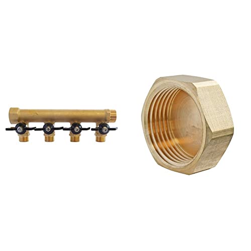 Somatherm For You 3540730010407 Collecteur Mini vanne 4S 20/27 DIY Laiton intégrées-4 départs 15/21-Entrée Femelle 20/27-Sortie Mâle, Aucun & Bouchon laiton femelle 20/27