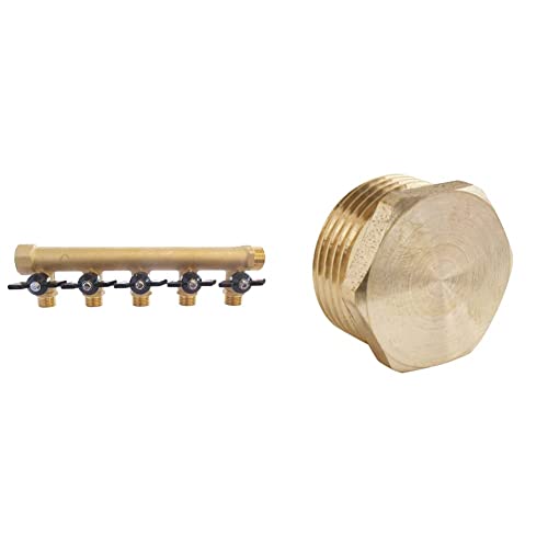 Somatherm For You 3540730010414 Collecteur Mini vanne 5S 20/27 DIY Laiton intégrées-5 départs 15/21-Entrée Femelle 20/27-Sortie Mâle, Aucun & Bouchon laiton mâle 20/27