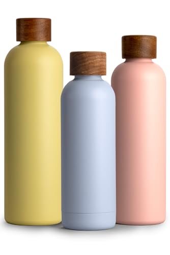 T&N Bouteille Isotherme d’eau 500ml en acier inoxydable avec bouchon en bois d'acacia, Gourde Inox 0,5l, conserve le froid à 29h, la chaleur 14h, étanche pour boissons gazeuses