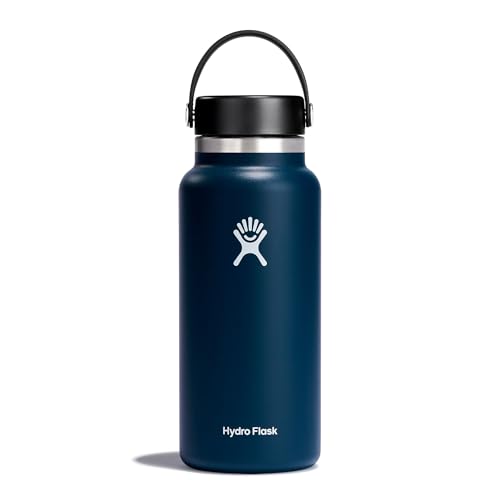 HYDRO FLASK - Gourde Isotherme 946 ml (32 oz) - Bouteille Inox à Isolation Sous Vide - Bouchon Antifuite et Revêtement par Poudre - Ouverture Large - Indigo