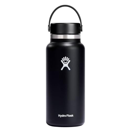 HYDRO FLASK - Gourde Isotherme 946 ml (32 oz) - Bouteille Inox à Isolation Sous Vide - Bouchon Antifuite et Revêtement par Poudre - Ouverture Large - Noir