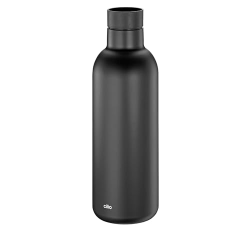 cilio Gourde isotherme Deluxe en acier inoxydable - Bouchon à 360° - Système à double paroi - Incassable et anti-fuite - 18 h chaud et 24 h froid - 650 ml - Hauteur : 24,5 cm - Noir