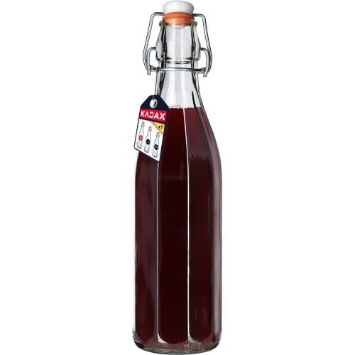 KADAX Bouteille en Verre de 1L avec Bouchon Hermétique pour la Conservation des Boissons, Parfaite pour le Kombucha et la Limonade