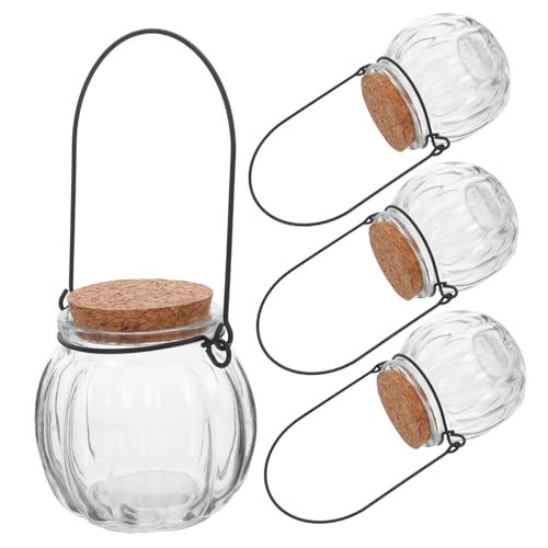Healifty Lot De 4 Bocaux En Verre À Suspendre : Bocal À Bonbons En Verre Transparent Avec Bouchon En Liège, Bouteille À Souhaits Suspendue, Récipient Hermétique Pour Bonbons Et Biscuits.