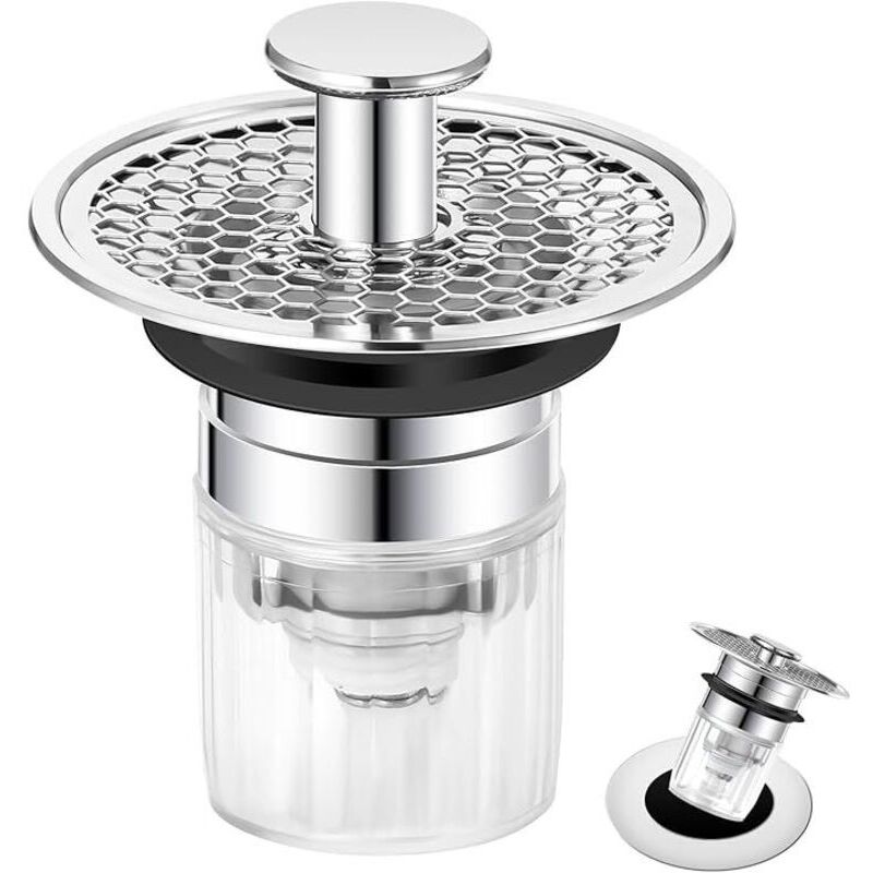 Ersandy - Filtre de vidange universel pour lavabo, Anti-Bloqué Inoxydable Bouchon lavabo poussoir bloque ,bonde de lavabo ,Flitre Cheveux Anti-Odeur