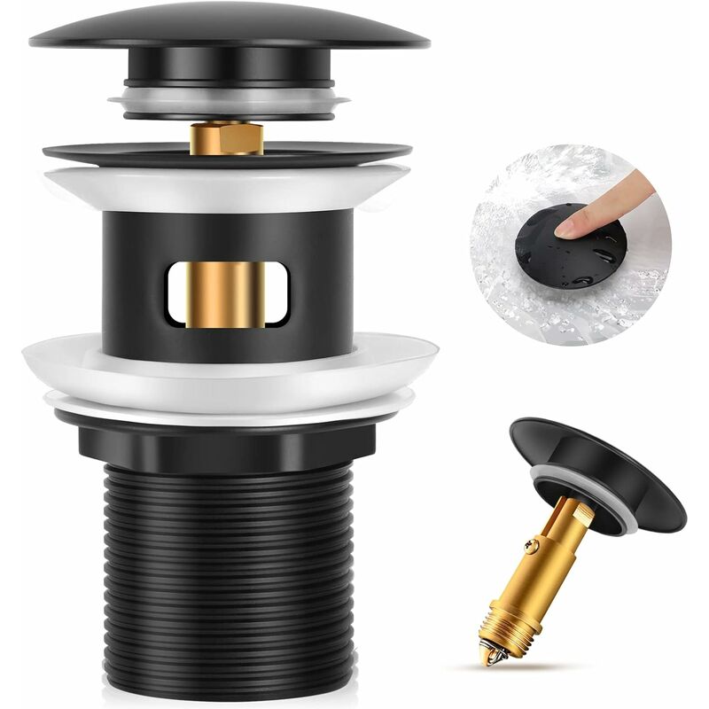 Bonde Popup Bouchon Lavabo en Acier Inoxydable pour lavabo Universel Pop up Filtre,3439mm,Noir