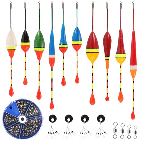 prota 10 Pièces Flotteur Peche, Bouchon Peche Truite Flotteur Truite, 205 Plomb Peche 4 Stop Float Peche et 4 Emerillon Peche pour Poissons Communs Anguilles Truites