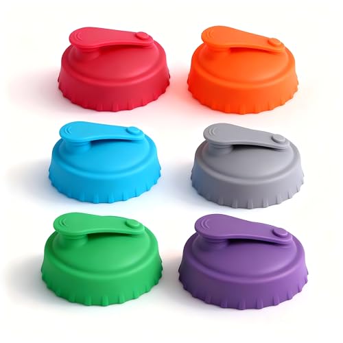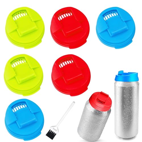 HERKINDNESS 6 Pièces Couvercle Canette, 63 mm Couvercle Canette Soda avec Bec Verseur et Joint, Bouchon Canette Soda en Silicone, pour Activités Plein Air, Pique Niques, Fêtes, Pêche