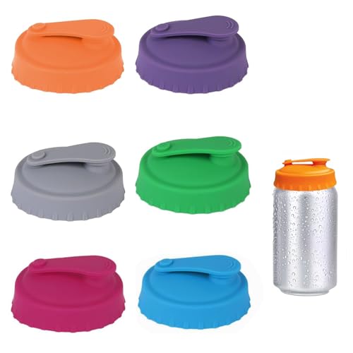 Lot de 6 couvercles pour canette de soda en silicone,bouchon canette soda Réutilisables,anti-poussière y déversement,para latas es fácil de limpiar(6 couleurs)