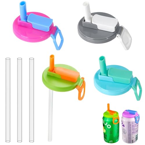 4 Pièces Couvercles De Canettes De Soda Avec Paille Pour Boissons Bouchon Canette avec Paille Couvercles De Canettes Portables Réutilisable et Anti-fuite pour Cola, Canettes de Boissons En Jus