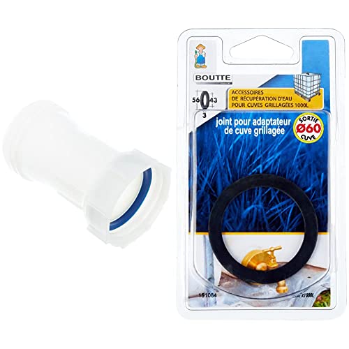 Boutté RD1000L IBC Rallonge de cuve 1000l Droite ø60, Blanc & Joint Caoutchouc pour Adaptateur de cuve R1000L IBC ø60 (#0183593), Or