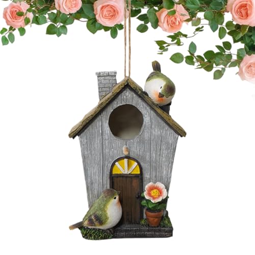 JIEBWCHA Maison pour Oiseaux,Abri en Résine avec Bouchon Amovible Résistant Au Vent - Abri De Nidification,pour Nidification Repos Intérieur Extérieur Maison Dormir Jeu Jardin