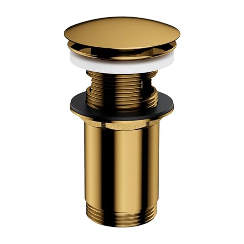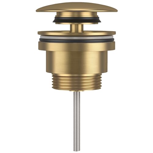 VALAZ Bouchon Universel pour lavabo et Bidet avec ou sans trop-Plein en Or brossé doré Mat pour bonde Click Clack, Pop-Up