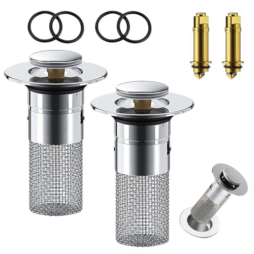 2 Pièces Bonde de Lavabo Universel Pop Up,34-40mm Bouchon de Lavabo Pop-Up Universel avec Filtre Anti-Clogging,Flitre de Vidange Anti-Bloqué,Accessoire Bouchon Baignoire pour Lavabo Cuisine Bain-Long