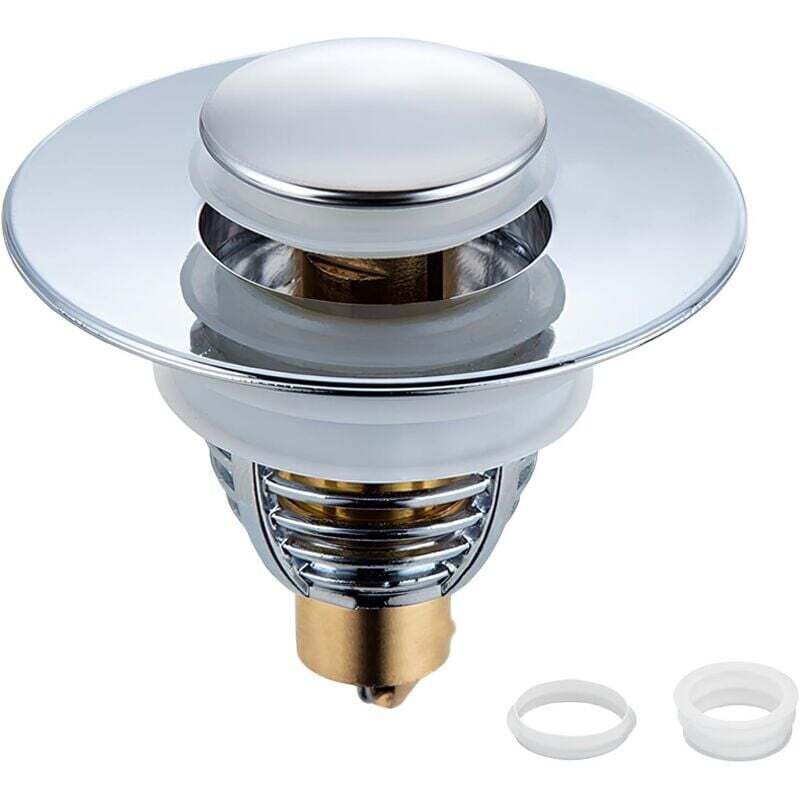 Bouchon de vidange pour lavabo avec trop-plein, bouchon de vidange automatique universel, bouchon de vidange à ouverture par pression de 3,2 cm (1