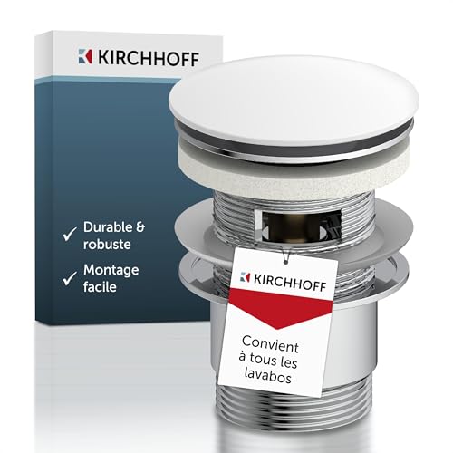 Kirchhoff Universal Garniture de vidage pour lavabo, Pop Up Bouchon de lavabo, soupape de vidage avec trop-Plein, Bouchon de vidage pour lavabo de Salle de Bains & lavabo, 98807410, Blanc/Chrome