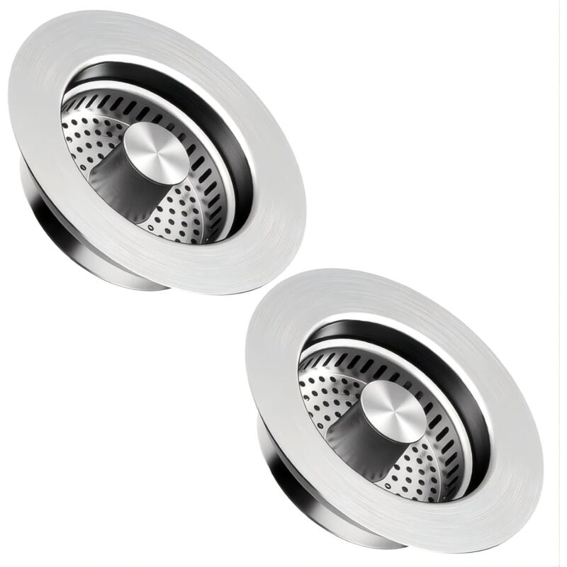 Lot de 2 filtre d'évier de cuisine et bouchon de lavabo pour une profondeur 40 mm, trou d'évier 75-86 mm, 3 en 1 Pop-Up Bouchon de vidange en acier