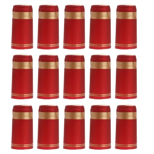 OHYER 100 Pièces Vin Capsules Rétractables en PVC Capsules Thermorétractables Bouteille Vin Capsules Rétractable Bouchon Thermorétractable pour Fête Famille Mariage Cave à Vin 30mm (Or, Rouge)