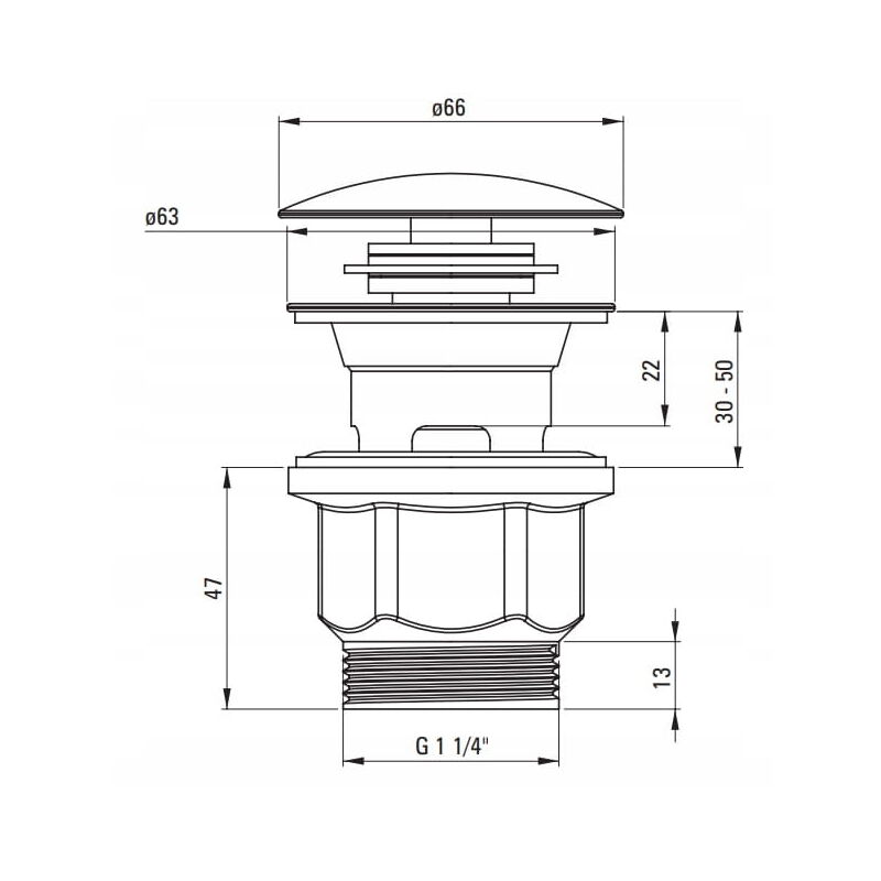 Clapet de lavabo en céramique 1"1/2 sans trop-plein – Ø40 mm avec bouchon à poignée