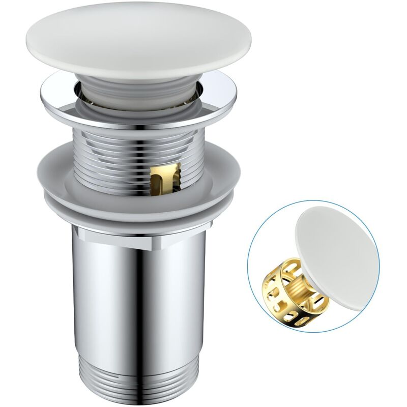 Bonde de Lavabo Blanc Céramique avec/sans Trop-Plein, Bonde Clic Clac avec Panier Filtrant, Bouchon Vidage Pop-Up de Lavabo for Salle de Bain,