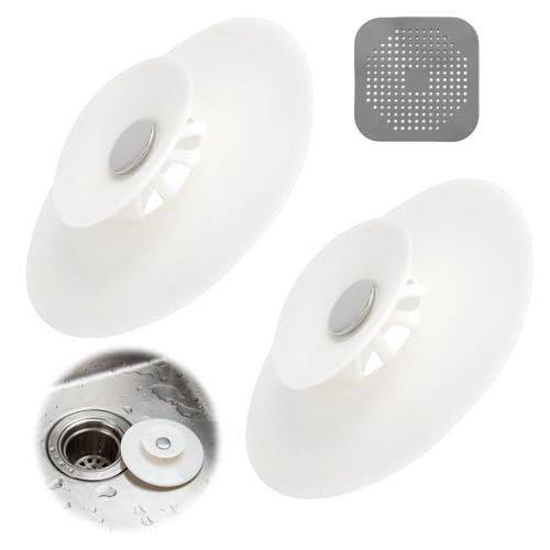 HUAERSICO Universel Bouchon Filtre de Baignoire avec Fonction Tamis à Cheveux 2 pièces,Filtre de vidange Silicone pour évier de Cuisine,Bouchon Filtre de vidange avec Tamis en Caoutchouc pour lavabo