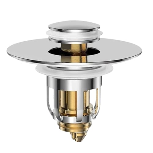 FUBESK Bouchon d'obturation universel en laiton chromé pour évier de cuisine - 50 mm - Bouchon en métal pour lavabo de cuisine et salle de bain - Bouchon à ressort
