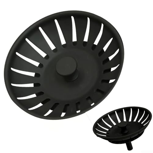 Lot de 2 bouchons d'évier de cuisine pour bonde standard de 8,9 cm, noir, 50 x 80 mm