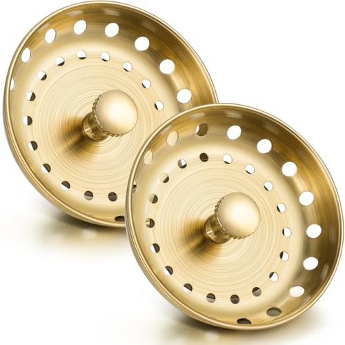 Retisee Lot de 2 Bouchons d'évier de Cuisine en Acier Inoxydable pour Remplacement Universel de 8,9 cm (doré brossé)