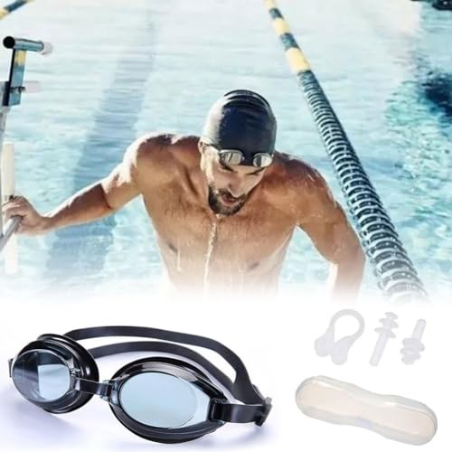 Generisch Lunettes de natation avec bouchons d'oreille et étui - Lunettes de natation réglables, anti-buée, étanches, pour adultes et enfants, piscine et entraînement