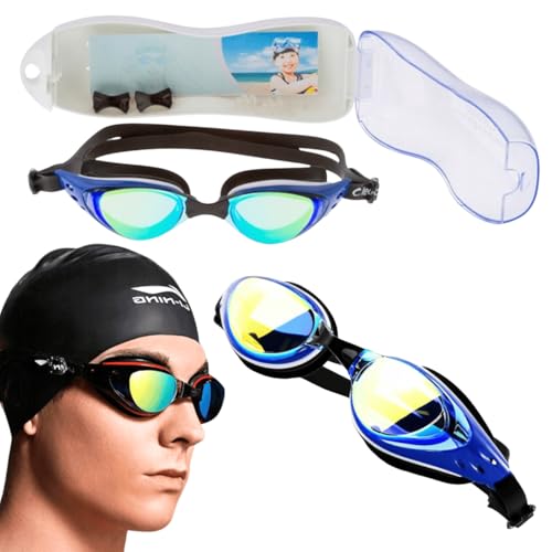 gifyym Lunettes de natation pour, lunettes de piscine avec bouchons d'oreille imperméables, lunettes anti-buée anti-fuite avec protection UV pour exploration sous-marine et plage