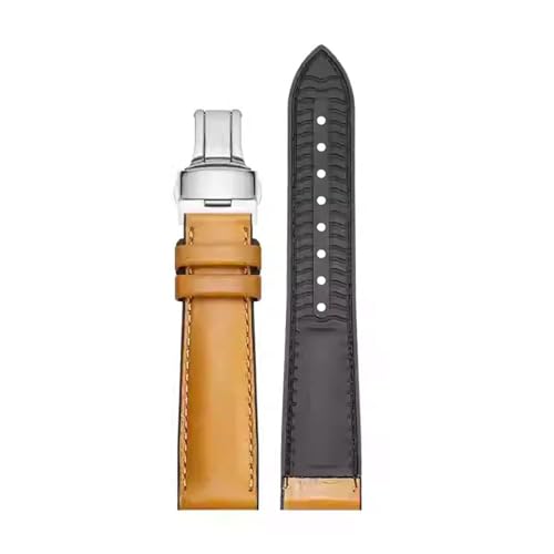 NRERDMT Bracelet de montre en cuir véritable et caoutchouc fluoré, cuir de vache, boucle papillon, ceinture for homme, étanche et durable(Yellow,21mm)