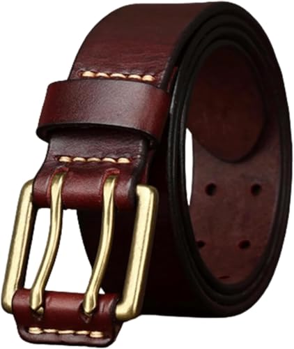 Ceinture Rétro Double Griffe Ceinture Homme 2 Trous en Cuir avec Boucle à Rouleau Ceinture Homme 3,8cm De Large, Reddish Brown, 120