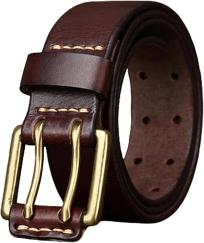 Ceinture Rétro Double Griffe Ceinture Homme 2 Trous en Cuir avec Boucle à Rouleau Ceinture Homme 3,8cm De Large, Coffee, 105cm