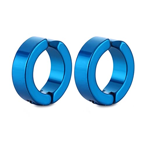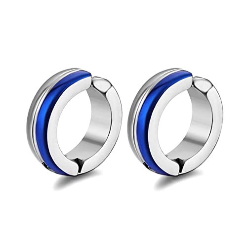 Beydodo Boucles d'oreilles Homme Clip, Boucle d'oreille Sans Percage Acier Innoxydable Forme Ronde Bleue